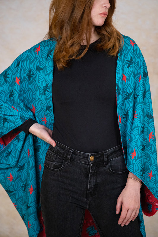 Nuestro kimono Nagoya es reversible, lo puedes usar por cualquiera de los dos lados. Cada cara, cuenta una historia diferente. Encuentras diferentes tonalidades: desde el sobrio nude y el atemporal blanco y negro, hasta el vibrante rojo tan presente en oriente.