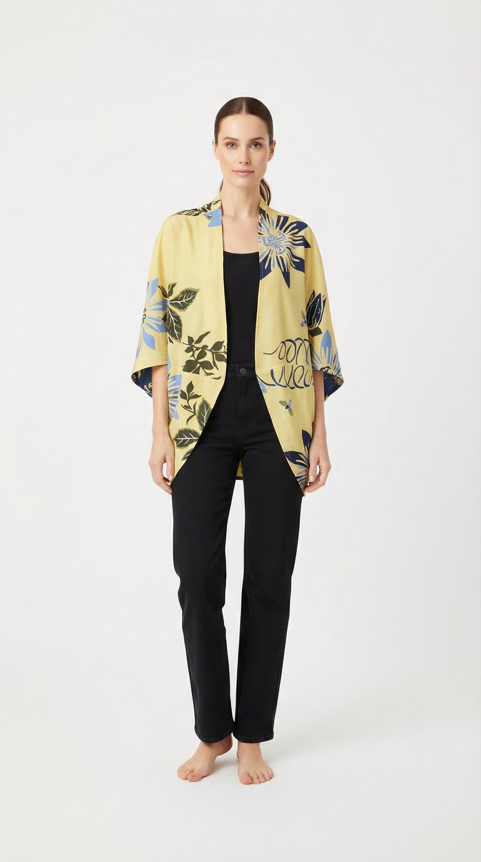 El Kimono Savia es la pieza más representativa de OchoCinco. Su diseño doble faz —dos opciones distintas en una sola prenda— permite jugar con contrastes, colores y estampados de manera natural, transformándose según el momento y el estilo de cada mujer. Su silueta abierta y fluida aporta movimiento y funciona en todos los climas. Savia se lleva con la misma facilidad en el día a día, como capa ligera en las noches o incluso sobre un vestido de baño en la playa. Es una prenda que acompaña, resalta y eleva cualquier look sin esfuerzo. Lleva el ADN de la marca: color, frescura y una esencia femenina que se siente única. Disponible en talla única y talla petite, para adaptarse de forma cómoda a diferentes alturas y proporciones.